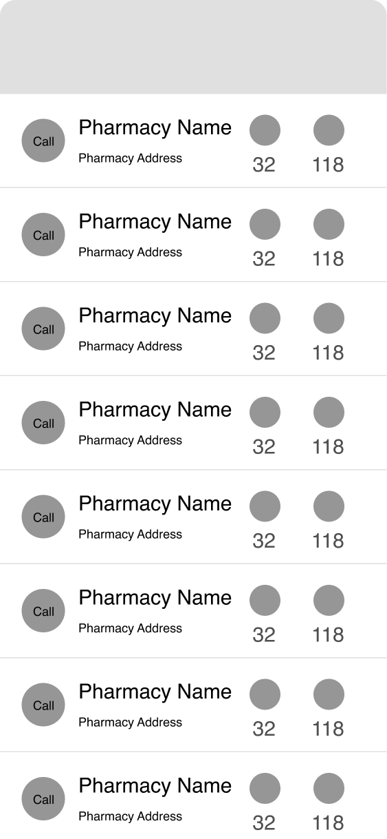 Initially, the information card for a specific pharmacy was displayed horizontally, causing confusion for users after browsing through results displayed vertically.