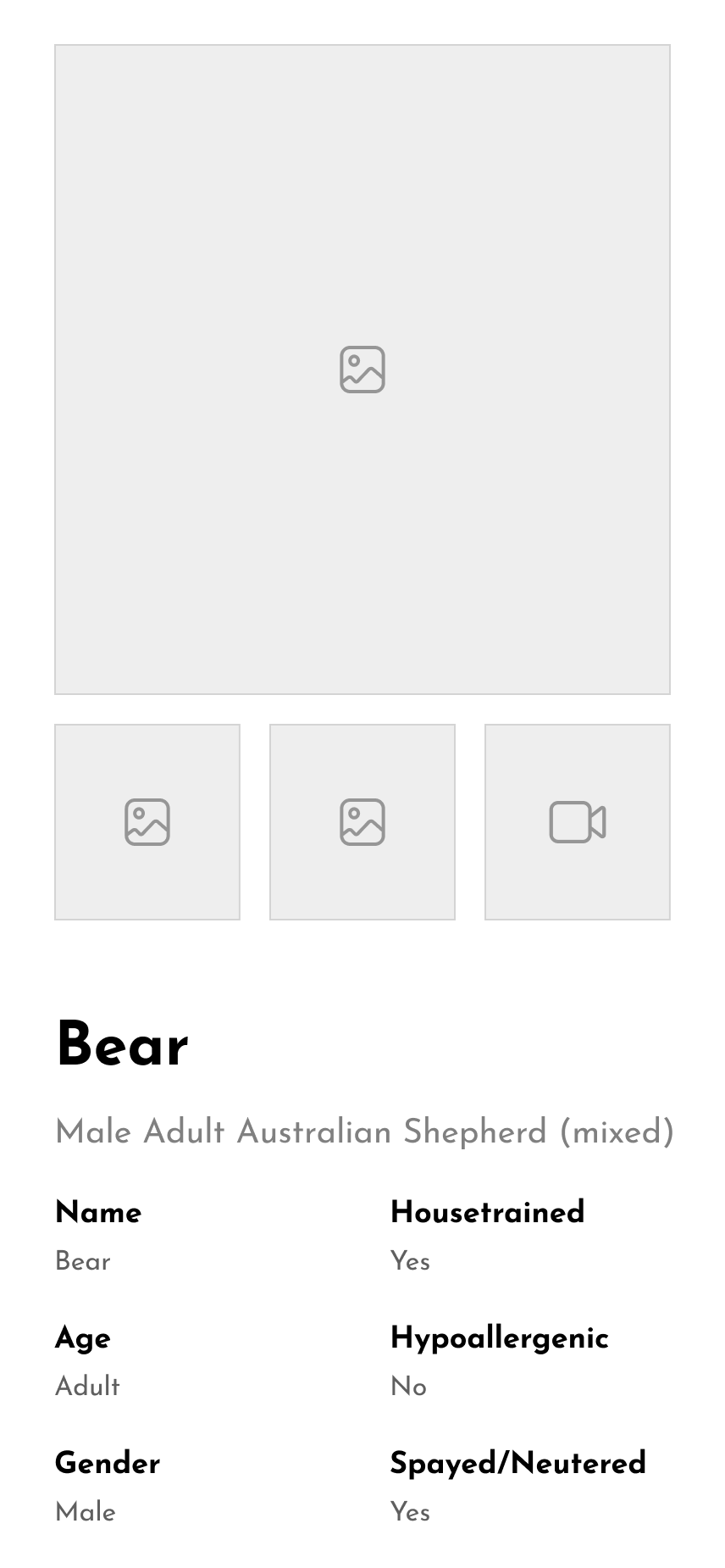 Prominent Video Display: Enlarge videos on the page to emphasize each dog's uniqueness, encouraging a shift towards companion-focused adoptions.
