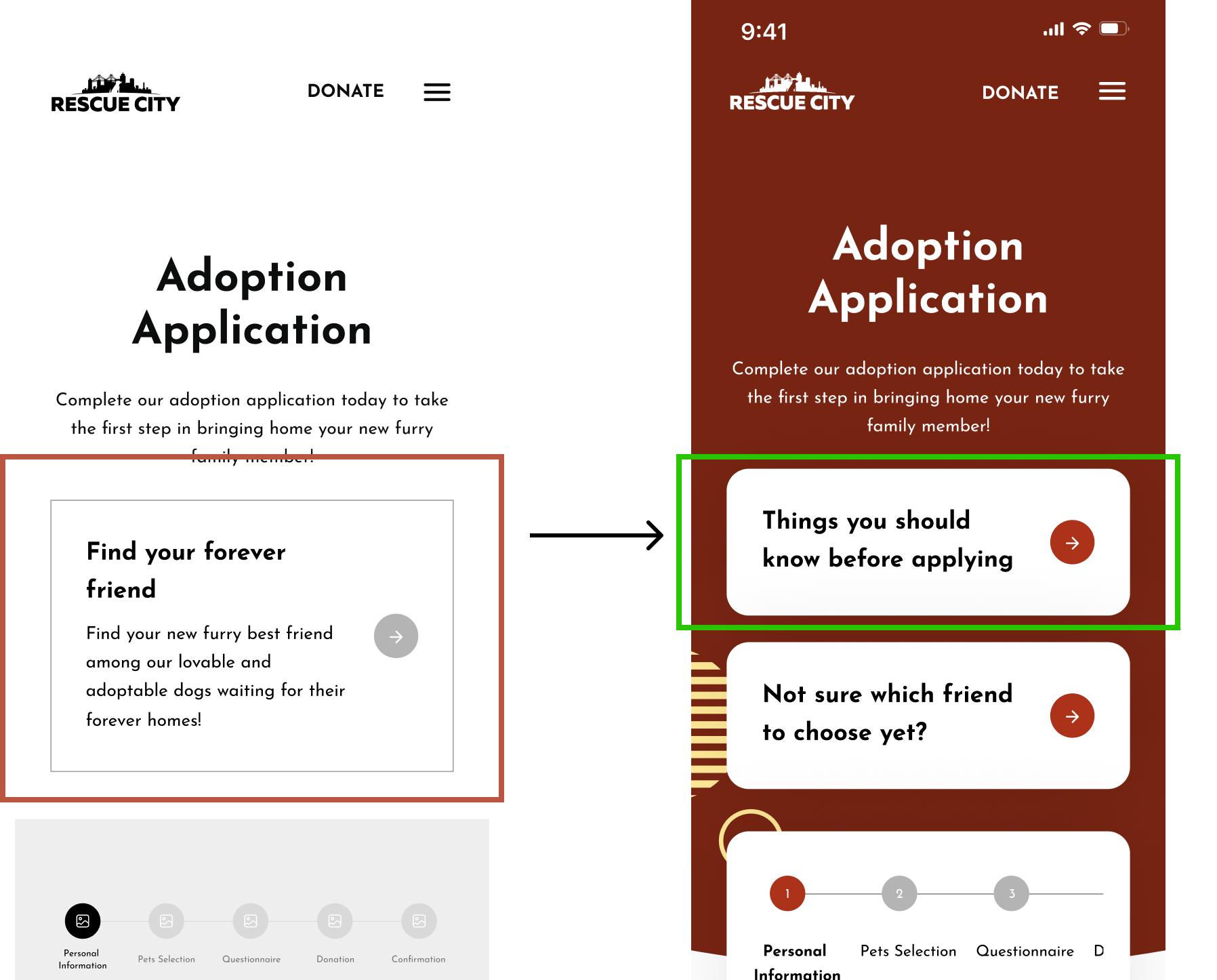 *Currently, the technical team at Rescue City is updating the site based on our research and design. Once the updates are live, I will be delighted to share the final changes!
