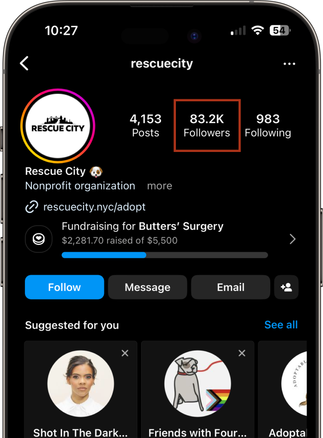 Rescue City (RC) is a New York City-based nonprofit dog foster organization boasting an impressive Instagram following of over 83K fans. Remarkably, 65% of users visit the RC website from mobile devices.